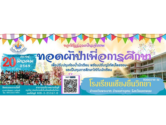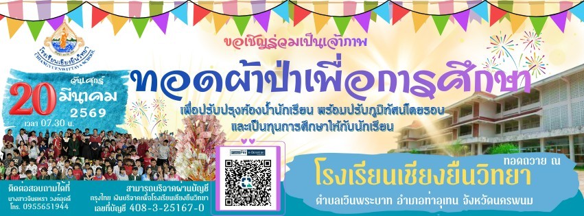 ขอเชิญร่วมเป็นเจ้าภาพ ทอดผ้าป่าการศึกษาเพื่อปรับปรุงห้องน้ำนักเรียน พร้อมปรับภูมิทัศน์โดยรอบและเป็นทุนการศึกษาให้กับนักเรียน